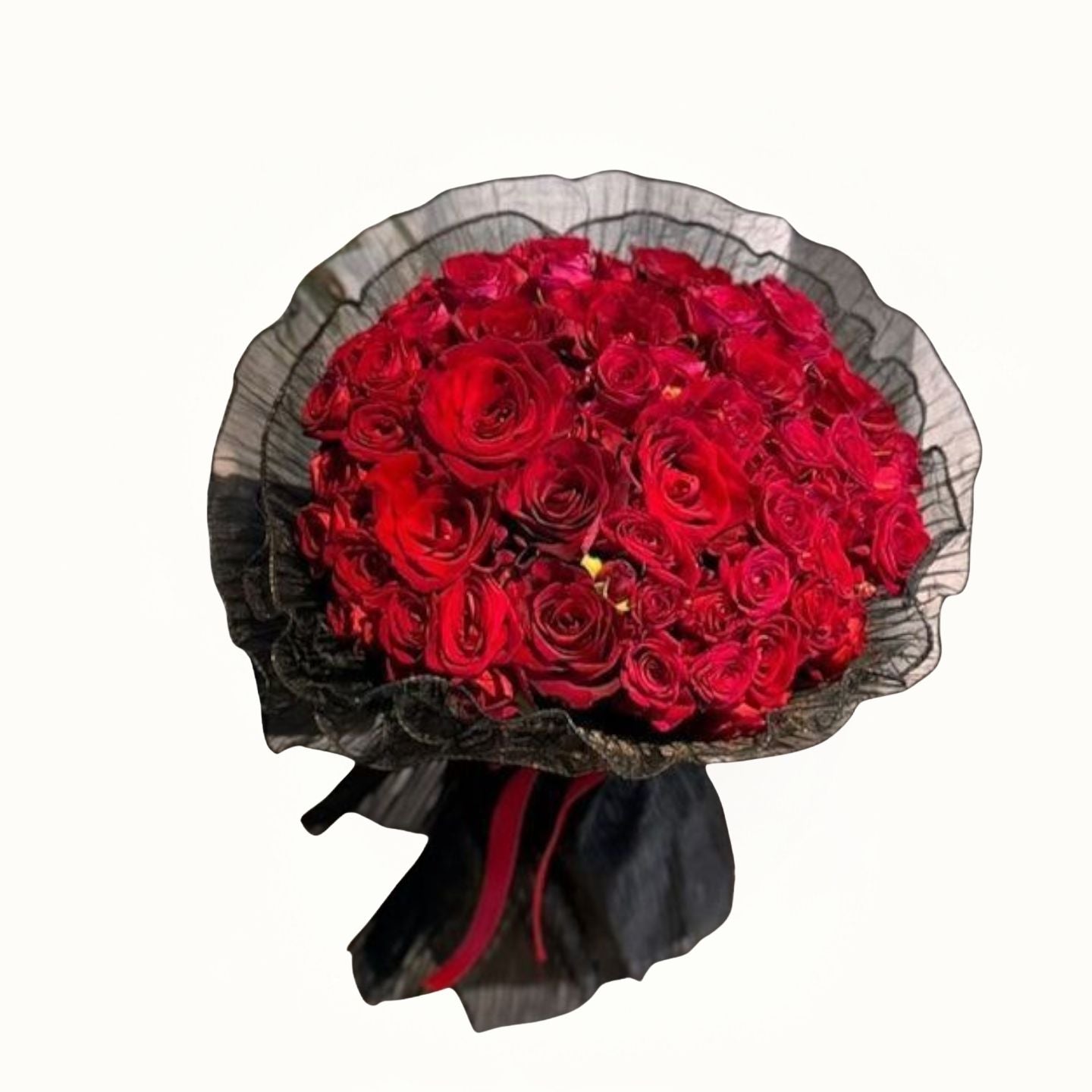 Celebrate elegance with the Black Queen bouquet, featuring 25 fresh red roses expertly arranged and wrapped in a sophisticated black spring-themed wrapping. This striking combination highlights the vibrant beauty of the roses while adding a modern, luxurious touch, perfect for making a memorable impression on any special occasion.