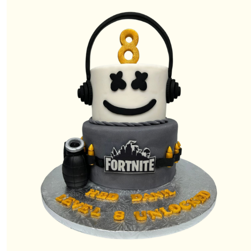 Celebrate your little gamer's special day with our epic Fortnite Marshmello Level-Up Cake! This two-tiered masterpiece is designed to thrill fans of Fortnite and Marshmello alike.