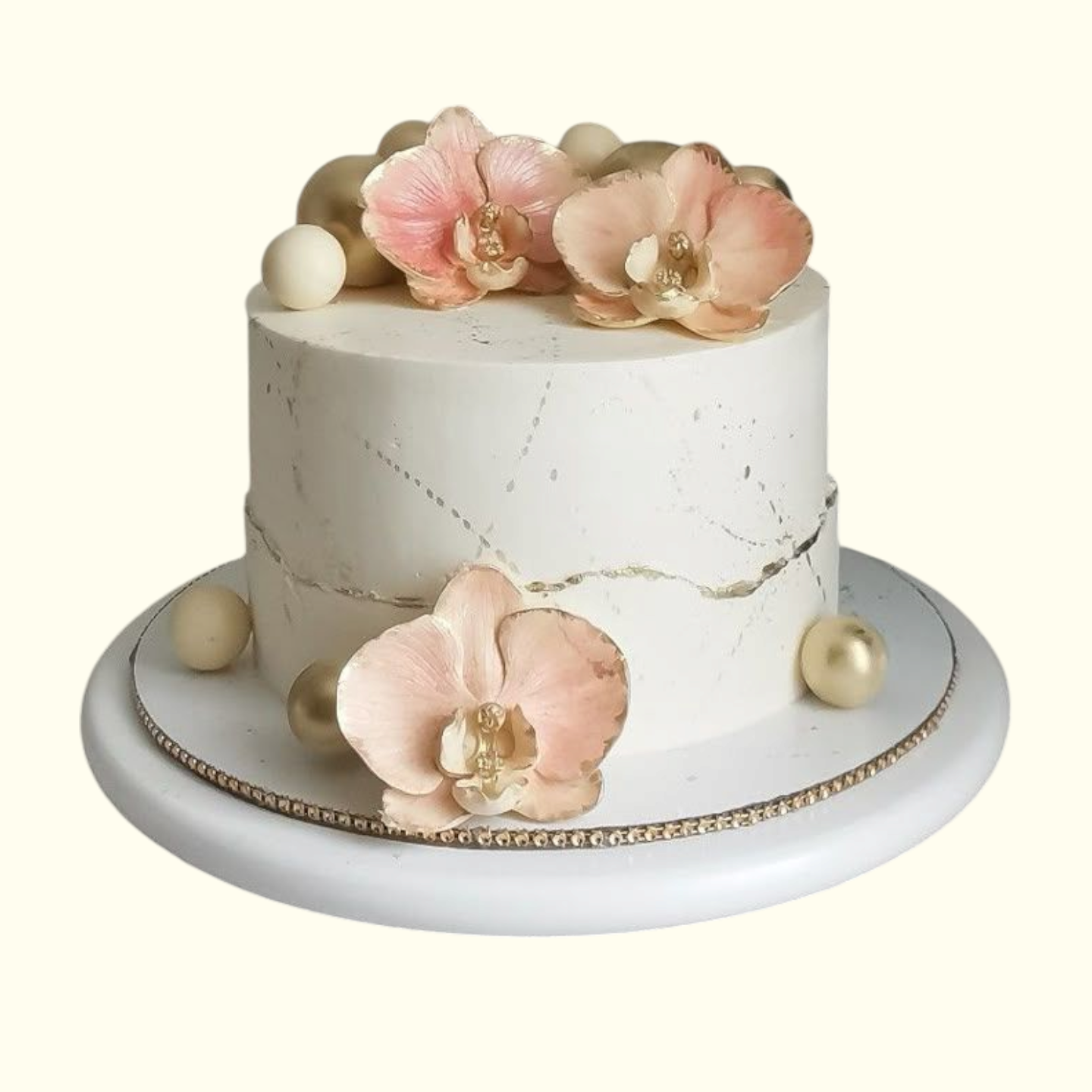 Indulge in a 1kg vanilla cake expertly crafted for a perfect balance of flavor and texture. This elegant dessert is complemented by three exquisite golden orchids, adding a touch of luxury and sophistication. Ideal for special occasions, this combination offers both visual appeal and a delightful taste experience.