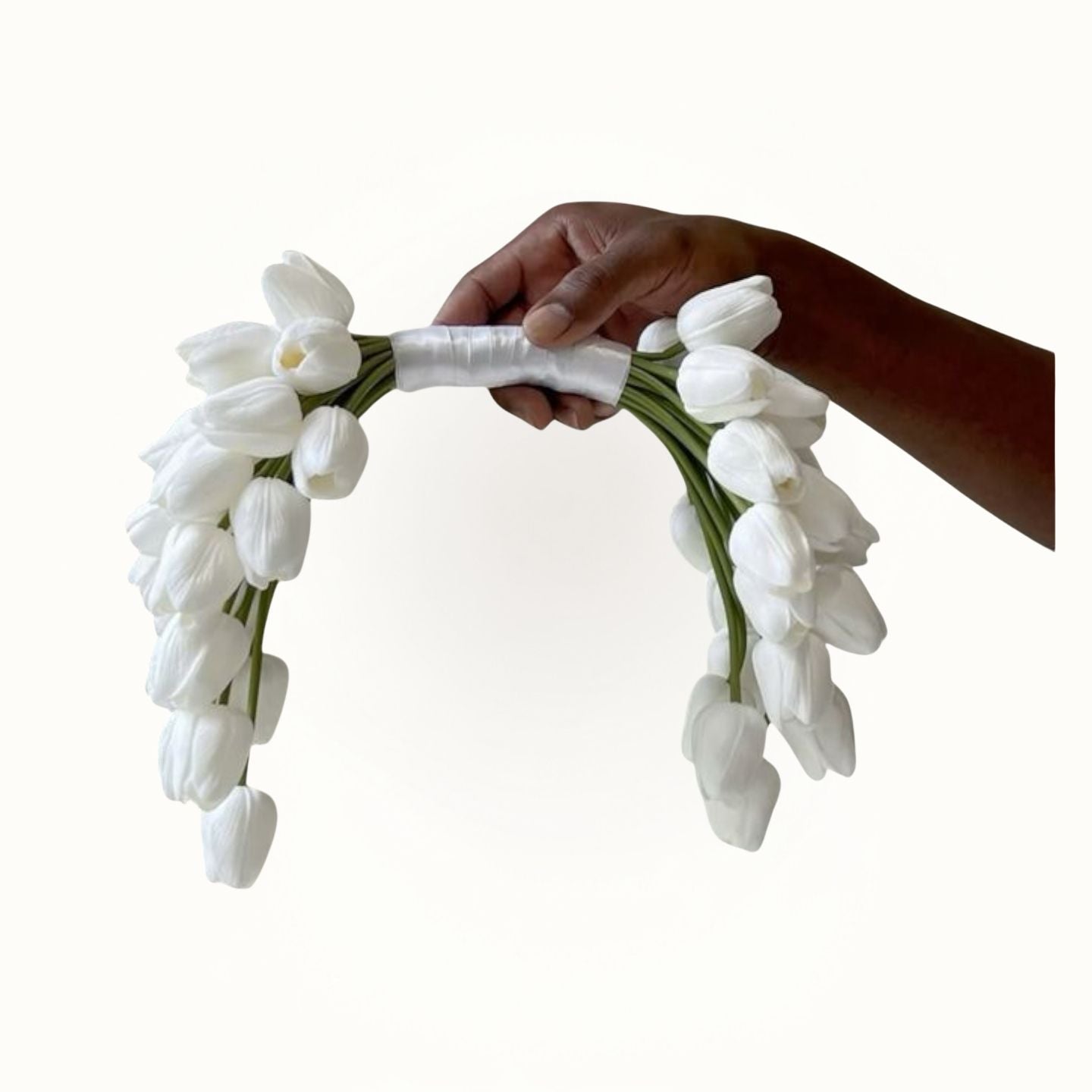 Experience elegance with the "Life With You" bridal bouquet, featuring 30 fresh white tulips expertly arranged in a U-shaped design. Handmade with attention to detail on both sides, this bouquet offers a balanced and graceful look from every angle, perfect for your special day. The pristine white tulips symbolize purity and new beginnings, making this bouquet an ideal choice for a timeless bridal statement.