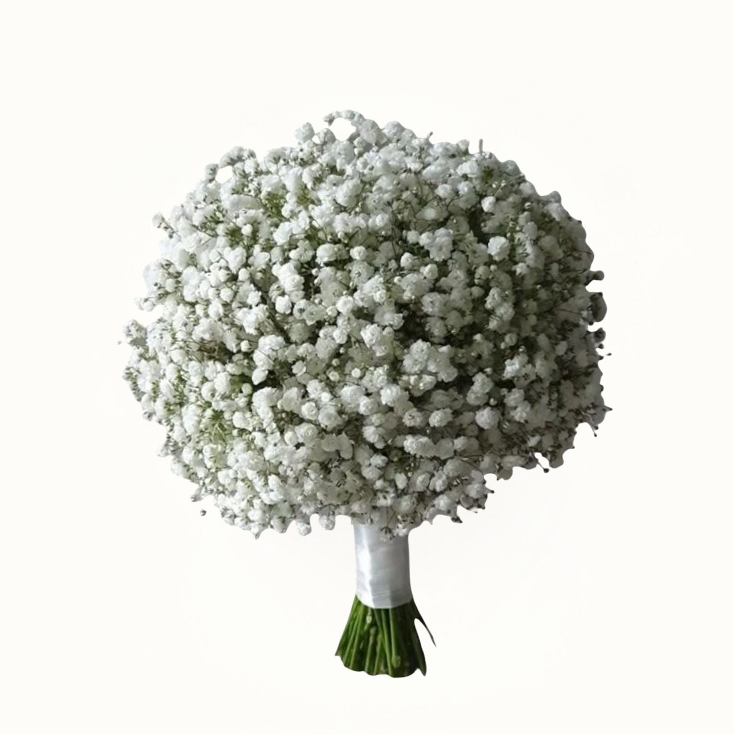 Love Breath presents a bridal hand bouquet composed of 10 fresh white gypsophila stems. Expertly arranged in a tight, elegant style, this bouquet offers a delicate and airy appearance that enhances bridal ensembles with subtle sophistication and timeless charm. Perfect for brides seeking refined simplicity on their special day.