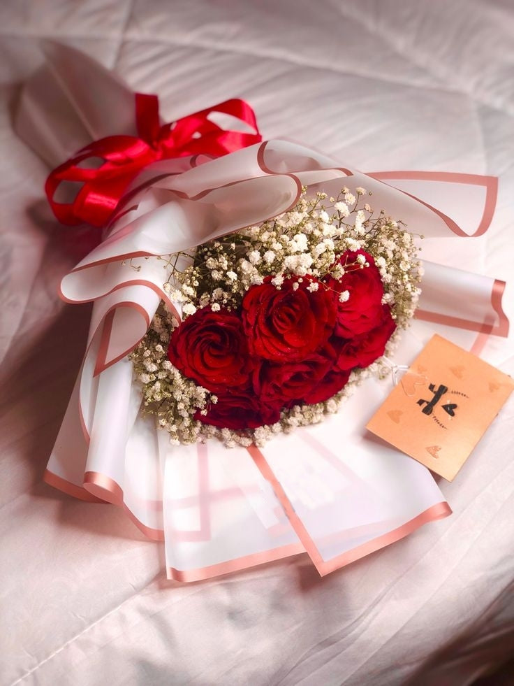 Delight your senses with our Rubi Red bouquet. Each bundle features vibrant red roses accented with delicate white Gypsophila, all carefully hand-crafted and wrapped in soft pink. Experience the elegance and beauty of this stunning arrangement for any special occasion.