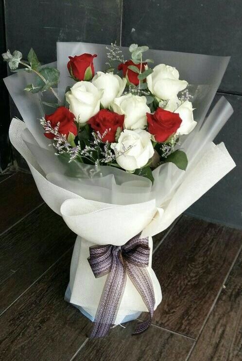 Our Touch of Red bouquet features a stunning mix of red and white flowers, complemented by vibrant green leaves for a striking contrast. Each flower is hand-crafted and carefully arranged in a delicate white wrapping, adding a touch of elegance to this beautiful arrangement. Bring a splash of color to any occasion with Touch of Red.